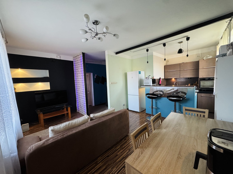 Mieszkanie składa się z salonu z aneksem kuchennym oraz oddzielnego pokoju. Mieszkanie jest wyposażone w najpotrzebniejsze meble oraz sprzęt ADG i gotowe do zamieszkania.