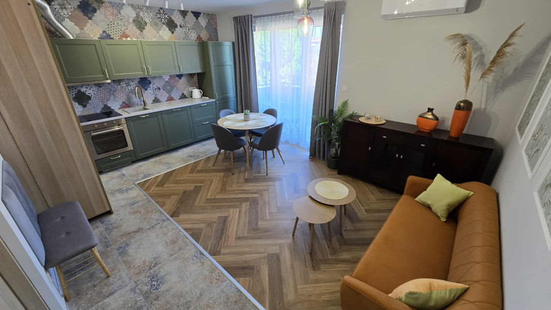 Nowoczesna w pełni wyposażona kuchnia z nowymi sprzetami: lodówką, zmywarką, piekarnikiem i płytą indukcyjną. W kuchni znajdują sie nowe niezbędne przybory kuchenne i zastawa.