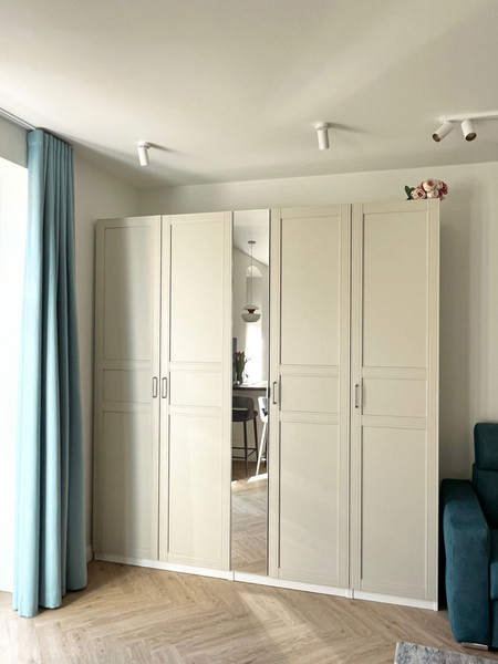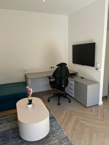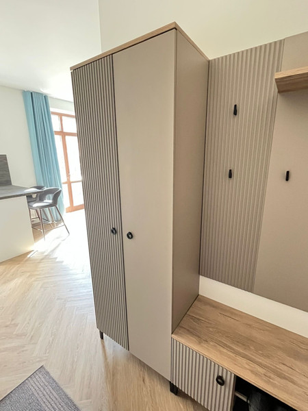W salonie bardzo pojemna szafa - garderoba, narożny tapczan z pojemnikiem na pościel, oraz narozne biurko do pracy + TV. Internet.