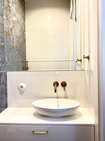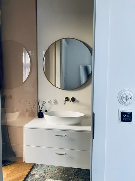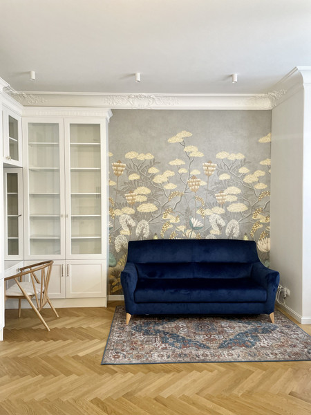 The apartment was fully renovated to a design by architect Anna Iskrzycka, with great respect for the building's original character and using high-quality materials throughout. Features include solid oak flooring, marble and sintered stone surfaces, and custom-made tiles and cabinetry. The apartment is additionally insulated and soundproofed.