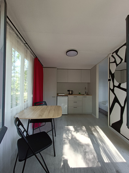 Na sprzedaż działka z funkcjonującym ośrodkiem Instytut Wypoczynku w malowniczej lokalizacji - ocena 10 oraz 9,4 na Bookingu. Teren jest ogrodzony, a dojazd jest utwardzony, co zapewnia wygodę. Na działce znajduje się murowany dom oraz dziewięć domków drewnianych i cztery domki w budowie.