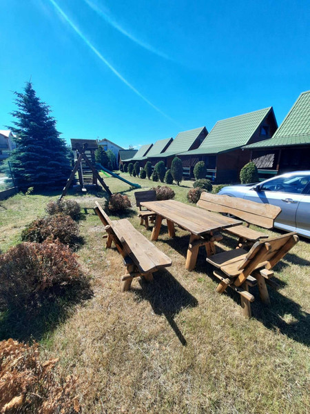 Na sprzedaż: Kompleks 8 drewnianych piętrowych domków letniskowych / 7 o pow. 25 mkw. plus poddasze z 2 sypialniami, jeden domek o pow. 35 mkw. z 2 sypialniami na poddaszu/ – gotowy biznes „Domki Lazur”.