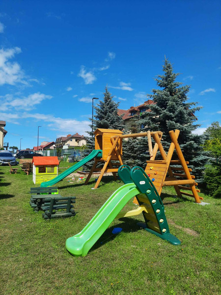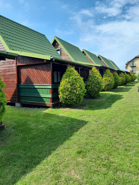 Przedmiotem sprzedaży jest kompleks ośmiu drewnianych domków letniskowych, utrzymanych w bardzo dobrym stanie technicznym i wizualnym, regularnie użytkowanych i generujących stabilne i wysokie dochody z najmu krótkoterminowego w okresie letnim. Obiekt sprzedawany jest jako gotowy biznes, z możliwością płynnego przejęcia działalności przez nowego właściciela. Każdy domek posiada dwie osobne sypialnie na piętrze, aneks kuchenny, łazienkę oraz zadaszony taras, stanowiący dodatkową przestrzeń wypoczynkową dla gości.