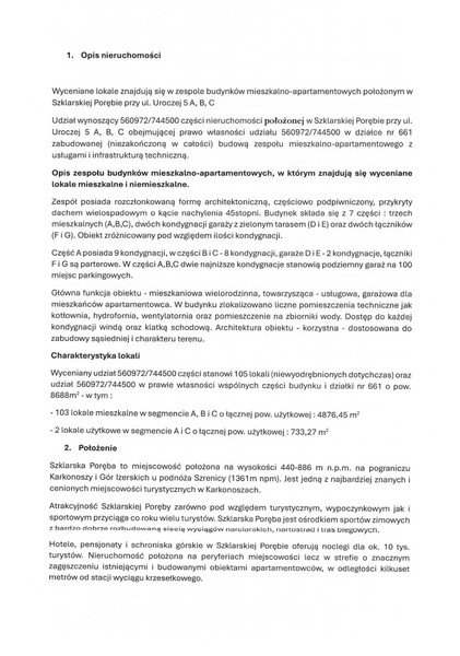 udział w prawie własności nieruchomości zabudowanej składającej się z działki gruntu nr 661 położonej w Szklarskiej Porębie przy ul. Uroczej nr 5A, B, C, dla której prowadzona jest księga wieczysta JG1J/00043353/0 – cena wywoławcza 35 924 000,00 złotych (słownie: trzydzieści pięć milionów dziewięćset dwadzieścia cztery tysiące złotych).