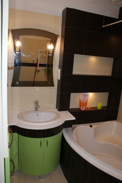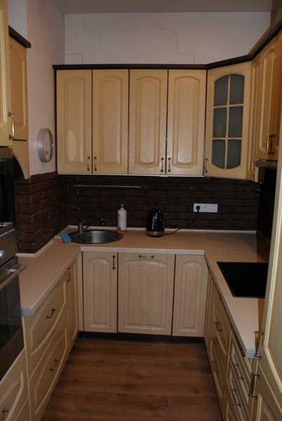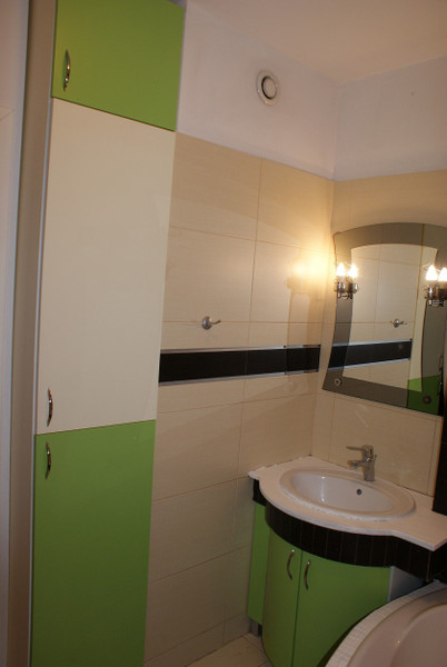 W pokoju szafa, 2 biurka, krzesło, komoda, półka oraz wygodny tapczan. Na korytarzu – dodatkowa szafa do podziału dla 3 osób. Łazienka z umywalką i wanną, osobno wc. W mieszkaniu pralka, lodówka, piekarnik, zmywarka, mikrofalówka, czajnik, garnki, patelnie, sztućce, talerze itp., odkurzacz, żelazko, deska do prasowania.