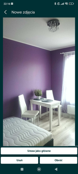 Pokój: słoneczny, umeblowany, zamykany na klucz. Pokój jest w trakcie remontu- nowy lokator otrzyma pokój świeżo wyremontowany i będzie pierwszym użytkownikiem. Obecne zdjęcia w kolorystyce fioletowej są zatem poglądowe, ponieważ jeszcze sprzed remontu.