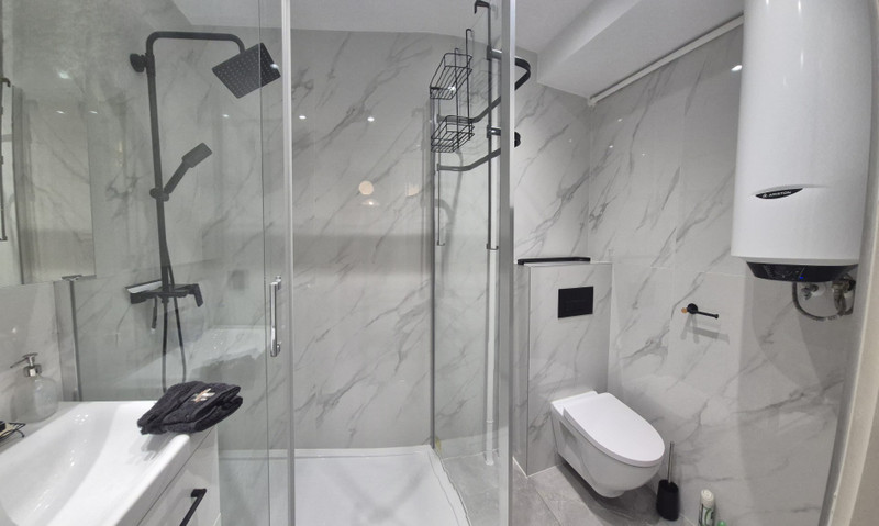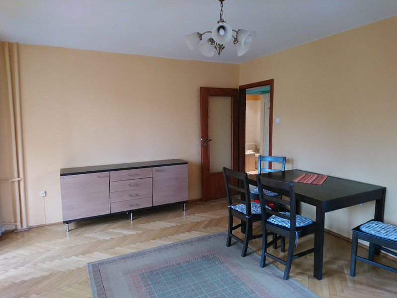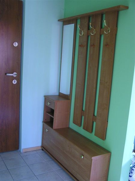 Duży salon z balkonem, stół, sofa i dwa mniejsze pokoje jedno z podwójnym łóżkiem i dużą szafą a drugi z rozkładana sofą, biurkiem. Kompletnie umeblowane nowymi meblami, w pokojach na podłodze parkiet, w łazience, przedpokoju i kuchni kafelki. Kuchnia wyposażona we wszystkie niezbędne sprzęty.