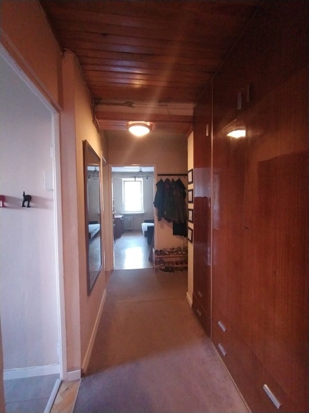 Przedpokój zabudowany bardzo dużą szafą.