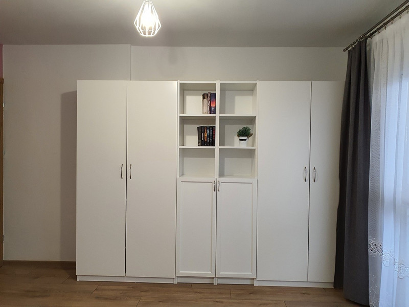 - meble: 2 łóżka z pojemnikiem na pościel i wygodnymi materacami, 2 funkcjonalne szafy, 2 regały , 2 biurka, 2 fotele obrotowe ( w przypadku wynajęcia przez 1 os. łóżko i biurko mogą zostać wyniesione)