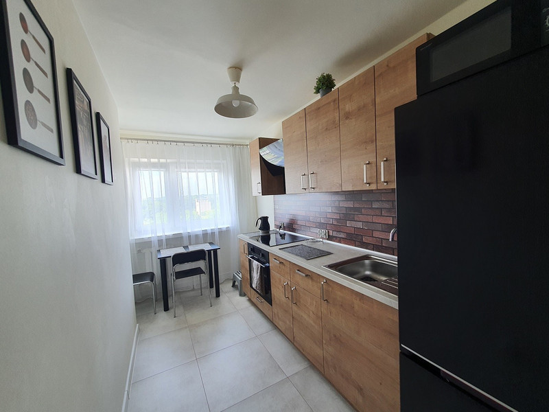 - oddzielna kuchnia jasna z oknem, w pełni wyposażona (lodówka z wydzielonym miejscem dla każdego lokatora, płyta indukcyjna, piekarnik, czajnik elektryczny, mikrofalówka, garnki, naczynia itd.
