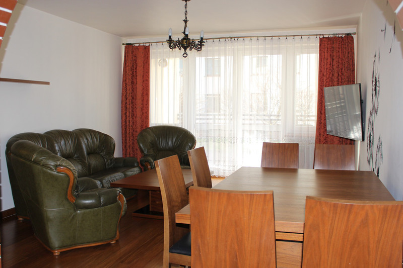 Mieszkanie składa się z z kuchni połączonej z salonem, oraz dwóch dodatkowych pokoi.