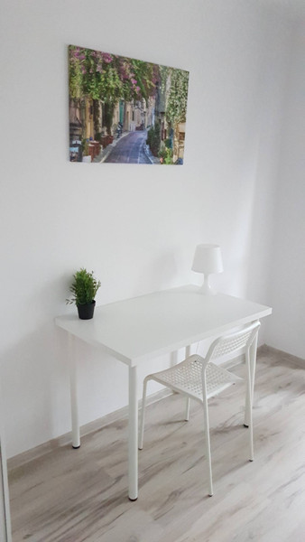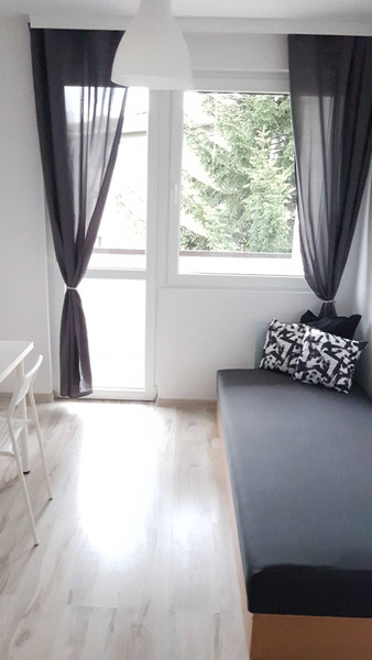 Pokój bardzo przytulny, po świeżym remoncie, czysty. W pełni umeblowany: rozkładana sofa, szafa, szafka nocna, biurko i krzesło. Duży balkon.