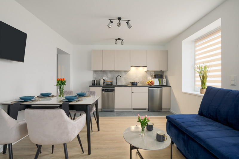 Apartament 1 to doskonały wybór dla osób ceniących wygodę, niezależność i prywatność. Dzięki osobnemu wejściu i funkcjonalnemu wyposażeniu będzie idealnym miejscem dla par, rodzin z dziećmi lub grupy przyjaciół szukających przytulnego zakątka na parterze. Przestronny salon z aneksem kuchennym, wygodna sypialnia z łożem małżeńskim oraz w pełni wyposażona łazienka sprawią, że poczujesz się jak w domu.