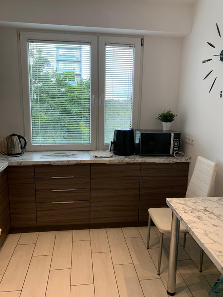 Pokój posiada nowe meble takie jak: szafa, biurko, fotel obrotowy, łóżko oraz szafkę nocną jest przestronny i widny. Mieszkanie posiada sieć Wifi.