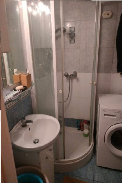 * łazienka: prysznic, pralka, umywalka