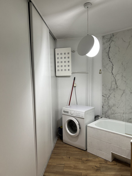 W mieszkaniu znajduje się część wspólna: duża łazienka z wanną/prysznicem, pralką szafą w zabudowie, dodatkowa toaleta. W korytarzu znajduje się kolejna duża szafa na buty, kuchnia jest w pełni wyposażona.
