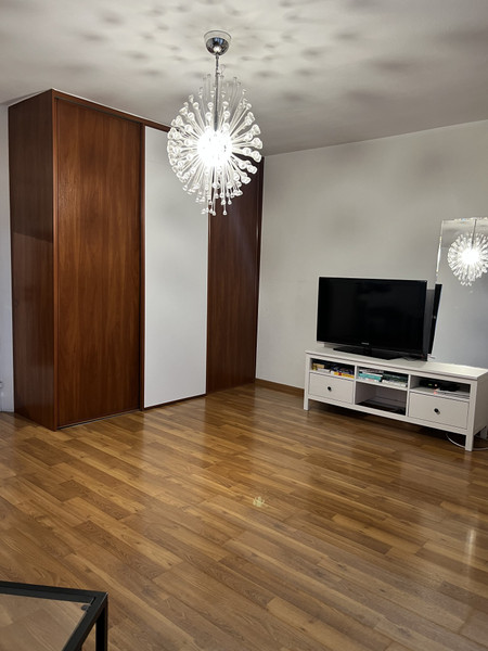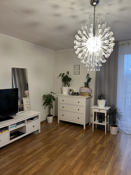 W pokoju jest bardzo duża, pojemna szafa, komoda, stolik RTV, telewizor, rozkładana kanapa oraz stolik nocny. Z pokoju jest wyjście na spory balkon. W oknach są rolety zacieniające oraz zasłony.