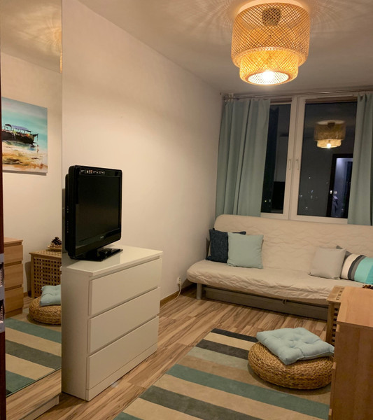 W mieszkaniu do dyspozycji kuchnia, łazienka, oddzielne WC. Mieszkanie w dobrym stanie, zadbane, słoneczne. Lokal na 10 piętrze w odnowionym 12 piętrowym bloku.