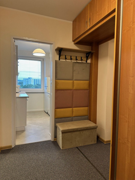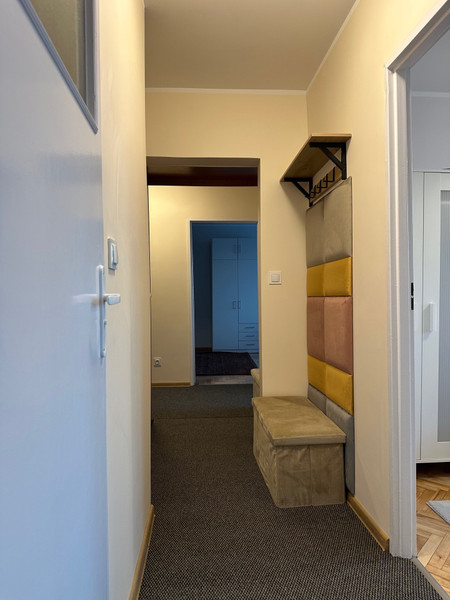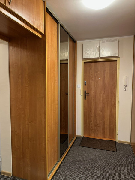 W przedpokoju znajduje się wieszak na ubrania i dwie duże szafy ubraniowe.
