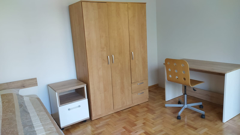 W każdym pokoju znajduje się pojedyncze łóżko z wygodnym materacem, szafa, stolik i krzesło. Mieszkanie jest wyposażone w pralkę, odkurzacz, deskę do prasowania, kuchenkę mikrofalową. Dodatkowo na przedpokoju znajdują się cztery pojemne szafy.