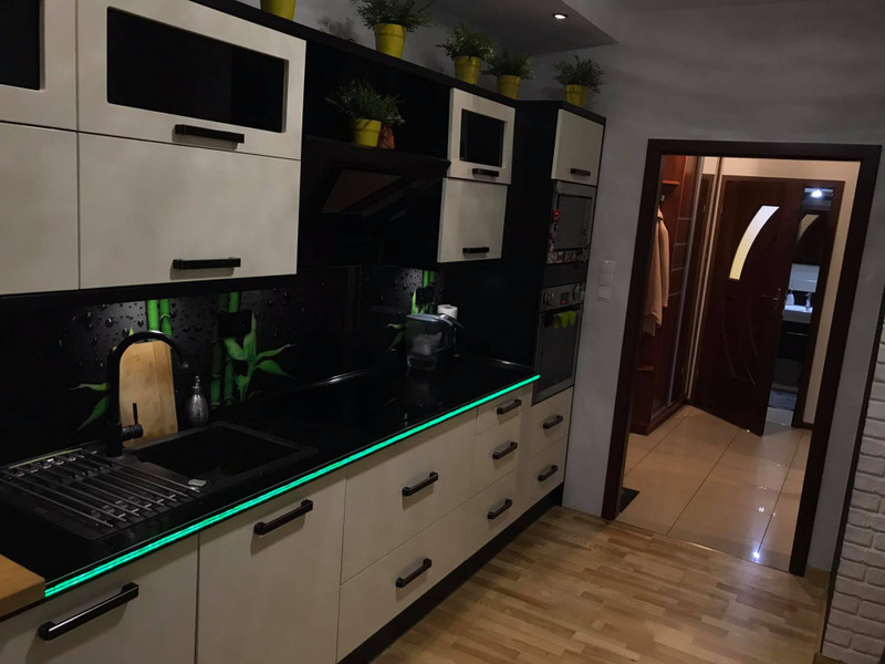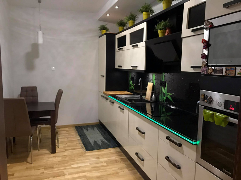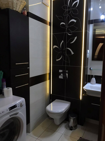 Wysokiej jakości wykończona łazienka z prysznicem i pralką oraz kuchnia z mikrofalą indukcją, piekarnikiem oraz zmywarką zapewnia wygodę codziennego użytkowania.
