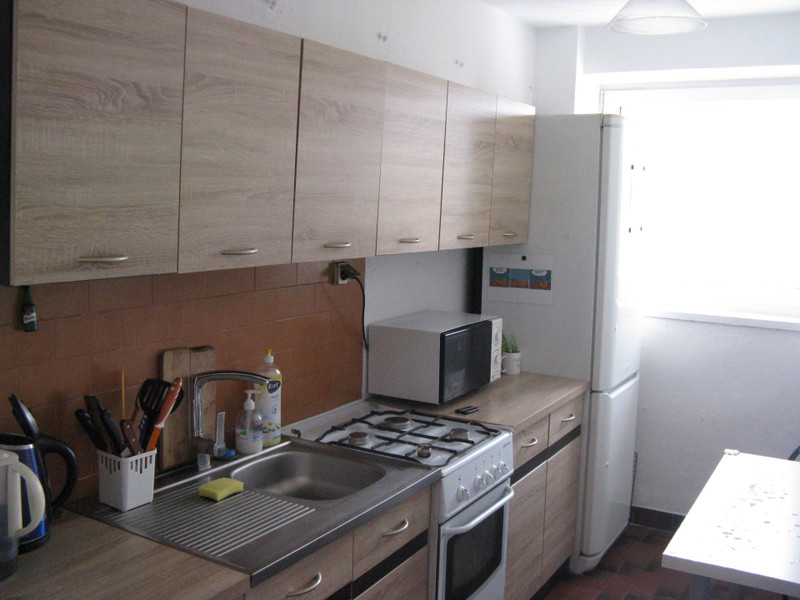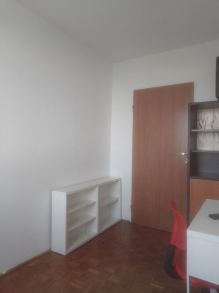 W ciepłym pokoju z nowym oknem jest rozkładana kanapa, biurko, krzesło, bardzo porządna szafka z półkami, wysoki stojak z półkami, komoda. Pokój jest zamykany na klucz. Ponadto do dyspozycji szafa na ubrania znajdująca się w korytarzu oraz – uwaga dziewczyny – samodzielne szafki na buty!!! Dodatkowo w dużym mieszkaniu (82 m2) jest jeszcze jedno pomieszczenie na przechowywanie czegokolwiek (rower, walizki itp.). Rzecz jasna kuchenka, pralka, lodówka, zmywarka, odkurzacz, suszarka na pranie, deska do prasowania, żelazko, naczynia, sztućce, czajnik elektryczny, a nawet filtr do wody zapewnione. W kuchni każdy ma swoją własną szafkę i półkę w lodówce. Mieszkanie znajduje się w bardzo zadbanym bloku z monitoringiem.