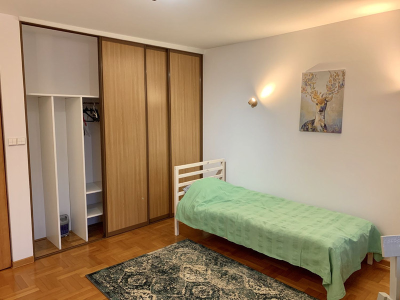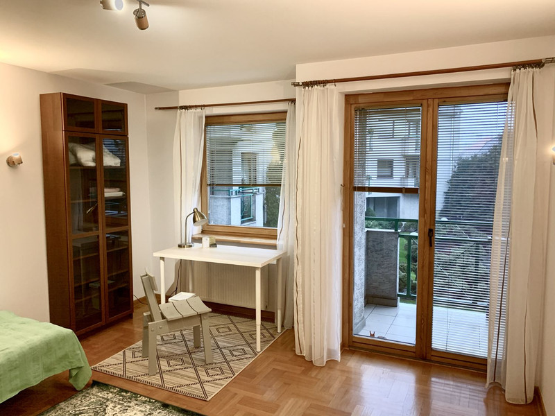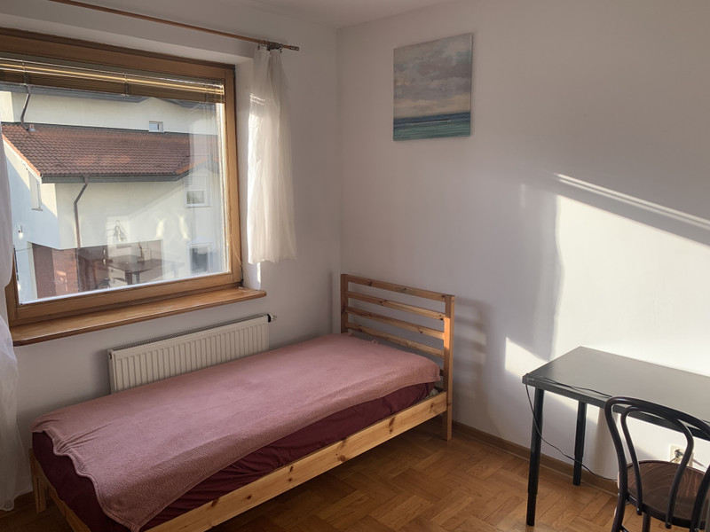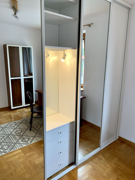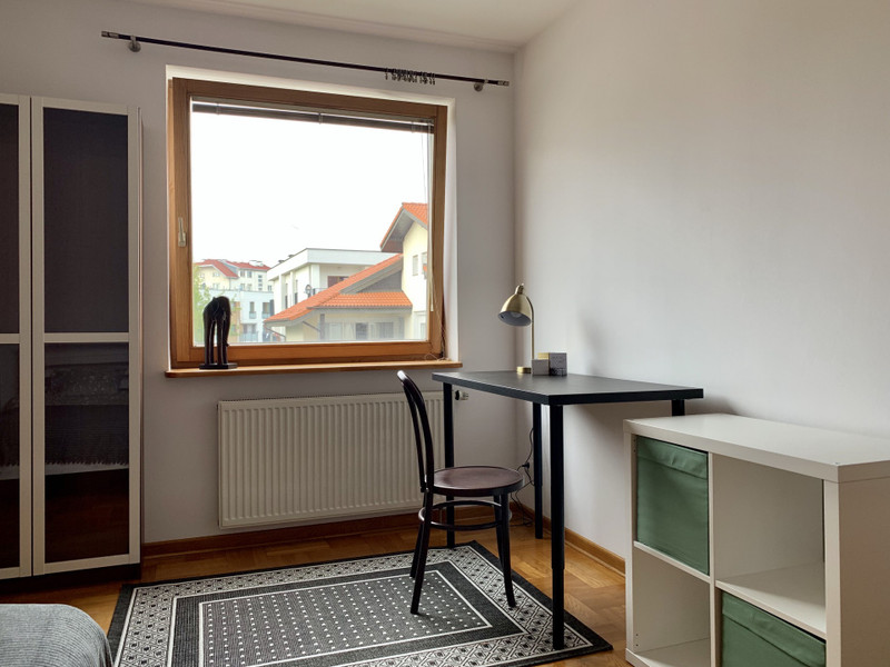 Do wynajęcia jeden z czterech osobnych pokoi (zamykanych na klucz), część wspólna: dwie łazienki, przedpokój z szafami wnękowymi i wieszakiem na ubrania, kuchnia i osobny pokój wspólny (salon/jadalnia). Możliwość dodatkowego wynajęcia piwnicy.