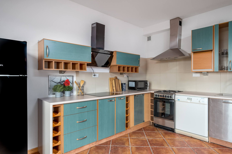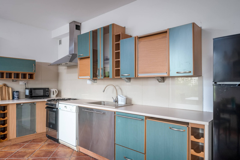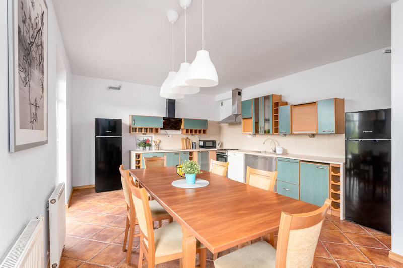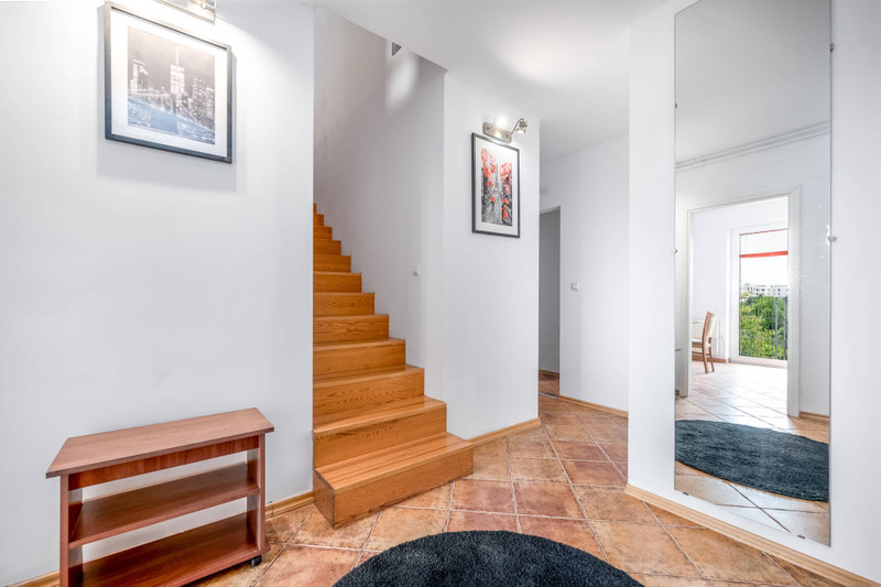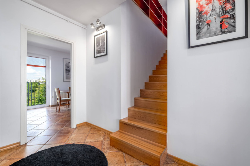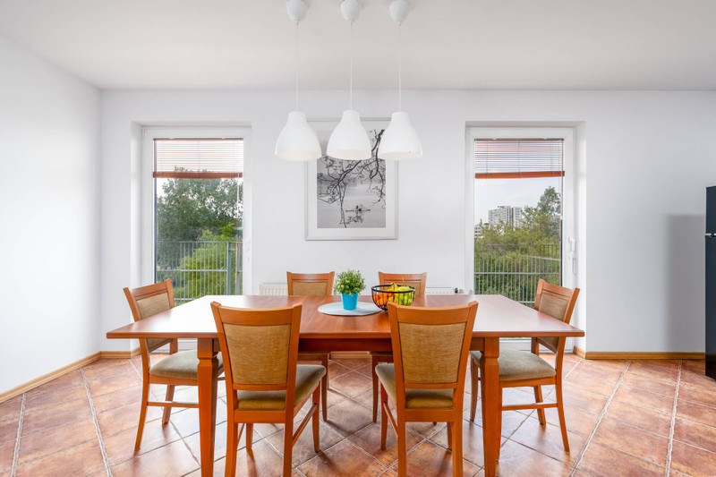 The room is part of a spacious, 2-level apartment with an area of 160 m². It is fully equipped and furnished. The apartment has two shared bathrooms with bathtubs and toilets, and one of the rooms has its own bathroom. The whole apartment is fully equipped and prepared for rent for rooms. The kitchen is very large, equipped with two hobs, two refrigerators and a large table, which provides comfortable conditions for preparing meals.