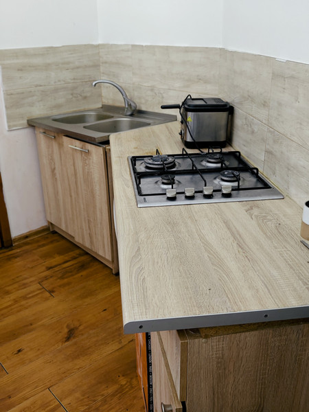 Mieszkania posiada łazienkę z WC (z prysznicem), kuchnię – glazura i terakota. Wyposażenie dodatkowe: pralka, lodówka, kuchnia gazowa 4 palnikowa, szafki kuchenne i łazienkowe, suszarka.