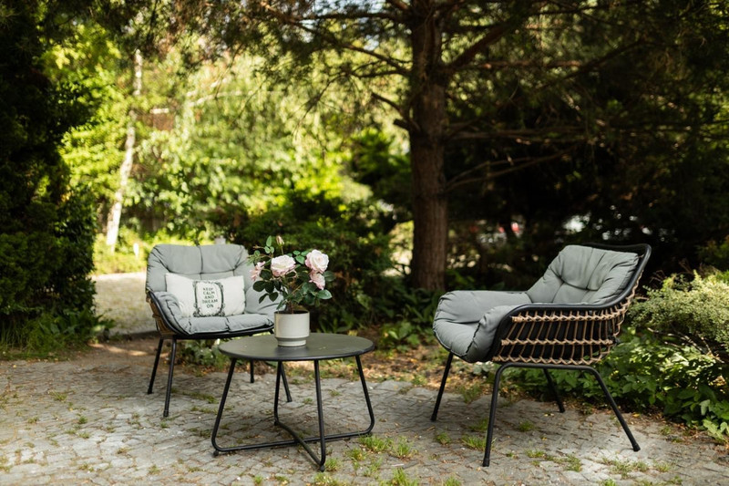 • Podwórko z ławkami i stołami – idealne na ciepłe dni