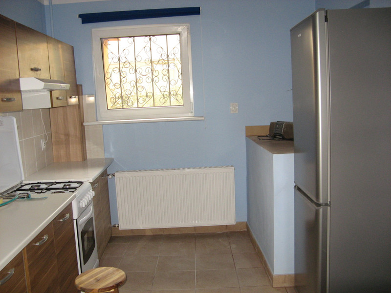 Wyposażenie kuchni: kuchenka gazowo-elektryczna z okapem kuchennym, lodówko-zamrażarka, stół, 5 taboretów, zlewozmywak 2-komorowy, szafki kuchenne.