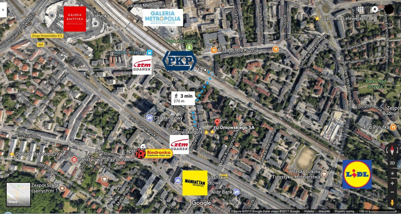 • dworzec PKP/SKM/PKM – 300 m,